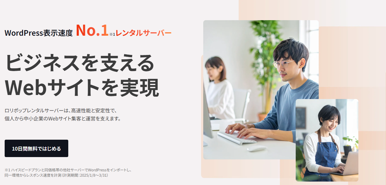 「ブログを開設したいけどサーバー選びが不安…」「費用を抑えつつ品質も妥協したくない」――そんなあなたにぴったりな選択肢が、**ロリポップ!レンタルサーバー**です。GMOペパボ株式会社が運営し、安心の実績を持つ国内老舗サーバーサービス。利用者数200万人超、評価・実績ともに信頼されているサービスです。【特徴・メリット】・月額99円から始められる圧倒的コスパ・WordPressに強い高速LiteSpeedサーバー対応・独自SSL、メール、バックアップも標準装備・5つのプランで個人から法人まで幅広く対応・初心者にも優しい管理画面とサポート体制【ベネフィット】・低コストでプロレベルのサイト運営が可能・初期費用ゼロ&10日間の無料お試しで始めやすい・必要な機能がすべて揃っていて後悔しない・将来的なサイト拡張にもスムーズに対応可能・WordPressの表示速度も劇的にアップし離脱防止に貢献【おすすめの使い方】・個人ブログや副業用サイトのスタートに・法人・中小企業のコーポレートサイトにも・WordPress高速化を求める既存サイトの移転先として・デザインテーマやプラグインを自由に活用しやすい環境。サーバー選びは、サイトの成否を分ける重要な要素。ロリポップ!なら低価格でも高品質な運用が可能です。今すぐ公式サイトであなたにぴったりのプランをチェックして、安心の10日間無料体験から始めてみてください。