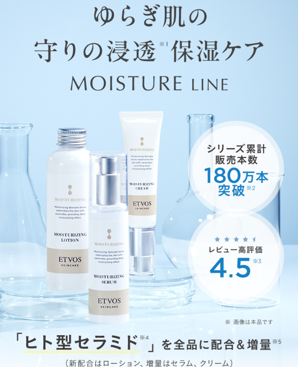 乾燥・ゆらぎ・つっぱり・ごわつき——敏感肌を悩ませる要因は多岐にわたります。ETVOS(エトヴォス)は、そんな肌状態に寄り添うため、モイスチャーライン(ベーシック保湿ケア) を展開。5種類のヒト型セラミドを配合し、肌のバリア機能を守りつつ、角層まで浸透するうるおいで、健やかな肌へ導きます。このラインは、スキンケア初心者から敏感肌に悩む人まで幅広く対応可能な基本保湿ラインとして位置づけられており、化粧水・美容液・クリームなど複数アイテムがラインで揃っています。 ✅ 特徴・強み 5種のヒト型セラミド 配合:肌のセラミドと同じ構造を持つ成分で、保湿とバリア機能の補強を目指す **低刺激処方・無添加設計**:敏感肌にも配慮し、刺激を最小化する設計がベースにある点が信頼性を支える **浸透※保湿**:角層までしっかり届き、乾燥を防ぎ潤いを長時間キープする処方設計 **ライン使い設計**:化粧水・セラム・クリームを組み合わせて使うことで、相乗的な保湿効果を発揮 **公式ブランドの安心感と実績**:ETVOS は敏感肌対応コスメブランドとして認知が高い## 🎯 ベネフィット(ユーザー目線)- うるおいが持続し、乾燥によるかゆみ・つっぱり感を軽減できる可能性。 肌バリアが守られる感覚で、外的刺激に対する耐性が高まるような体感n- 肌表面が柔らかく滑らかに整い、化粧のり・持ちも向上する期待感n- 敏感肌の方でも使える安心感が、スキンケア選びのストレスを軽減 必要な保湿を過不足なく補いながら、肌を無駄な刺激から守る日常習慣を構築できる 。 🛠 賢い使い方・導入のステップ **現在のスキンケアを見直し**:刺激になりうる成分を減らし、モイスチャーライン導入を検討 . **化粧水 → セラム → クリームの順で少量ずつ肌になじませる** 肌の抵抗力を上げながら段階的に使用 . **朝晩の定期使用**:継続性を持たせることで効果が出やすくなる **肌の変化を記録する**:使用感・調子の変化をメモして自分の肌傾向を把握. **季節や環境に応じて併用アイテムを調整**:乾燥が強い時はクリームを中心に使うなど調整. **限定キャンペーン・定期購入割引を活用**:価格とコストパフォーマンスを最適化 🔥 今すぐ使いたくなる理由・行動喚起(CTA)敏感肌で悩んでいるあなたにとって、「保湿ラインを変える」ことは大きなステップかもしれません。ですが、5種のヒト型セラミドを中心に設計された ETVOS モイスチャーラインなら、その一歩を安心と期待に変えてくれる可能性を秘めています。今なら、ラインの詳細やセット構成、価格・割引条件が確認できます。肌へのやさしさと潤いのバランスを実感したいなら、リンク先でチェックしてみてください。限定特典や送料無料の条件がある場合もあるので、迷う前に確認を。