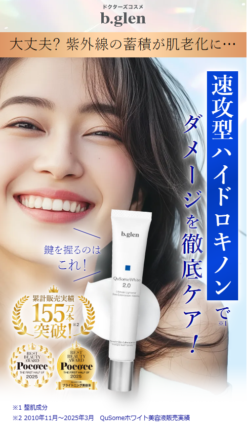 年齢とともに増えるシミやくすみ。そんな肌悩みに対して、ビーグレン(b.glen)は、**QuSome® 技術** という独自の浸透テクノロジーを用い、「肌の角層深部まで美容成分を届ける」処方で知られています。特に「QuSome ホワイト 2.0」では、ハイドロキノンの濃度を高め、従来より強化された美白ケアが話題に。✅ ビーグレン ホワイトラインの特徴・構成・**QuSome® 浸透技術** によって美容成分を肌の深層へ届ける設計。・主力アイテム「QuSome ホワイト 2.0(ホワイトクリーム)」は、ハイドロキノンを増量し、シミやくすみの原因にアプローチする設計。・無着色・無鉱物油・低刺激処方、ノンアルコール・ノンシリコン・パラベンフリーなど肌に優しい設計。・トライアルセット(7日間スペシャルセット)で、ホワイトケアを体験できるプログラムあり。🎯 - 肌の透明感が高まる感覚を得やすくなる可能性- くすみ・色ムラの改善が期待でき、化粧のり向上も狙える- 刺激の少ない処方なので敏感肌の人も使いやすい設計- シリーズで揃えて使うことで相乗効果を引き出せる- トライアルで始められるため、購入のハードルが低い🛠 賢い使い方・導入プラン1. まずトライアルセットで肌の反応を確かめる(7日間)2. 毎晩化粧水+ホワイトクリームの順で使用し、朝はUVケアを確実に行う 3. 他の美白系成分(ビタミンC誘導体など)との併用も検討 4. 肌が敏感な日は使用頻度を調整(毎日 → 1日おき) 5. 継続使用でライン使いを進め、肌状態を観察しながら調整 🔥 透明感のある肌を求めるなら、単なる表面ケアでは不十分。ビーグレンは、肌の奥に届く処方で“深く澄んだ肌”へのアプローチを目指します。トライアルセットから始めて、肌の変化を自分の目で確かめてみてください。限定特典・セット割引が用意されている今、最初の一歩を踏み出すなら“今”がタイミング。