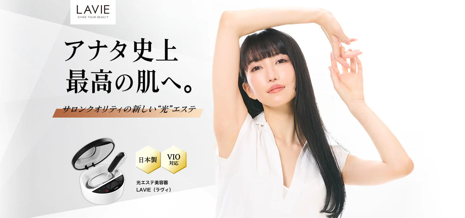 「サロンへ通う時間がない」「脱毛は痛そうで怖い」「コストが高くて続かない」──そんな悩みを持つ方にこそ使ってほしいのが LAVIE(ラヴィ)家庭用光エステ脱毛器 です。LAVIE は、ムダ毛ケアだけでなく“美顔モード”も搭載し、“光 × 肌質改善”を目指した設計が特徴。肌に優しい脱毛と同時にハリ・ツヤ感を引き出すアプローチで、1 台で美肌も叶えるホームケア機器です。🎯 LAVIE が選ばれる 7 つの強み・特徴1. 業界最高クラスの光出力(45J) & ツインコンデンサー搭載 LAVIE は、ツインコンデンサー方式を採用し、業界最高水準となる 45J の出力を実現。広範囲を効率よく照射でき、小回りを利かせながらも高い脱毛効果を期待できます。2. 7 段階パワー調整 & 調整可能設計 肌質や部位、毛質に合わせて 1 ~ 7 段階に出力調整可能。敏感肌の方でも無理なく使えるよう、安全設計を重視しています。3. 軽量・使いやすいハンドピース(約 110g) 照射用ハンドピースはわずか 110g と軽量設計。長時間の使用でも疲れにくく、女性の手にもフィットするグリップ形状で扱いやすさを追求しています。4. 美顔モード搭載 — “光美容器” 兼用設計 脱毛カートリッジとは別に美顔用カートリッジに交換することで、肌のハリ・ツヤを促進するフォトフェイシャル効果を発揮。脱毛だけでなく美肌もケアできる仕様です。 5. 日本製 & 安心保証 本体・部品ともに日本国内生産。厳格な品質管理のもと作られており、購入後 2 年間の製品保証が付帯。安心して長く使える設計です。 6. 脱毛カートリッジ交換式 & 高寿命設計 カートリッジ方式で、寿命に応じて交換できるためコストを抑制。本体を丸々買い替える必要がない点も魅力です。対応回数はレベル 1 で 10 万回、レベル 7 で 5,000 回とされています。 7. 多機能性 & 扱いやすさ 1.8 m の長コードで広範囲に届く仕様、鏡付き蓋、シンプルな外観設計など、日常使いを意識した使いやすさが随所に配慮されています。✅ ・サロンに通う手間・コスト削減 自宅で好きな時間に使えるため、通院・予約・移動の手間が省け、継続コストも抑えられます。・肌への負担を最小限に抑える設計 IPL 技術による光脱毛で、レーザーよりも肌にやさしい刺激設計。“痛みの少ないケア” を実現することで、ストレスフリーなムダ毛ケアが可能です。 ・美肌効果との統合 脱毛と同時に光美顔モードで肌のハリ・キメ改善を図れるため、しっとり・つや肌への近道になります。・長く使えるコストメリット 高寿命カートリッジ設計と交換可能方式により、長期的なコストパフォーマンスが高い投資になります。・安心して導入できる品質保証 日本製 + 2 年保証付きで安心感があるため、“初めてのホーム脱毛器” にも適しています。・多様な肌・毛質に対応 7 段階調整により、肌の状態や脱毛部位、性別・年齢問わず柔軟に対応可能です。📋 仕様・スペック概要・製品名:光エステ美容器 LAVIE(ラヴィ)基本セット LVA600 ・サイズ・重量:本体サイズ W240 × D240 × H100 mm、ハンドピース重量 約 110 g ・照射口面積:30 mm × 20 mm ・動作条件:定格電圧 100–240V、消費電力 最大 650 W・カートリッジ寿命:脱毛(レベル1)10 万回/(レベル7)5,000 回、美顔モードも同様寿命・保証期間:購入日から 2 年間保証 ・価格:基本セット ¥58,000(税込)/美顔セット ¥65,000(税込)などのバリエーション🗣 利用者の声・体験談(抜粋)「自宅でサロン並みの脱毛ができるとは驚きでした。美顔も重宝しています」「痛みが少なく、肌負担を感じずに続けられます」「ハンドピースが軽くて扱いやすく、腕も疲れません」「2 年保証があるから安心して購入できました」「鏡付き蓋のおかげで使いやすく、仕上がりも綺麗です」これらの声は、実際に LAVIE を導入したユーザーからの評価であり、信頼性の高さを裏付けています。⏳ LAVIE の公式サイトでは、期間限定割引・分割支払い対応・送料無料などの特典が用意されることがあります。特典は予告なく終了することがあるため、興味がある方は早めに公式ページをチェックすることをおすすめします。また、カートリッジ寿命や交換タイミング、保証登録などの準備が必要になるため、やる気があるうちに決断しておくのが安心です。❓ よくある質問(FAQ)Q:痛みはどれくらい?→ IPL 技術を採用しており、レーザーほど強い痛みは少なく、軽い刺激程度に設計されています。肌の状態に応じて出力を調整できるので安心です。Q:どれくらいの頻度で使う?→ 同じ部位には 10 日~2 週間間隔をあけて使用するのが目安。美顔モードは 2 日おき程度でも使える設計です。Q:日焼け肌には使えるか?→ 日焼けした肌は光脱毛による刺激リスクが高まるため、使用できない可能性があります。肌の状態を確認してから使うことが推奨されます。Q:脱毛完了までどれくらいかかる?→ 個人差はありますが、一般的には 1 年半~2 年が目安。2~3 ヶ月で変化を実感する方も多いようです。 Q:カートリッジ交換は高額?→ 交換用カートリッジ