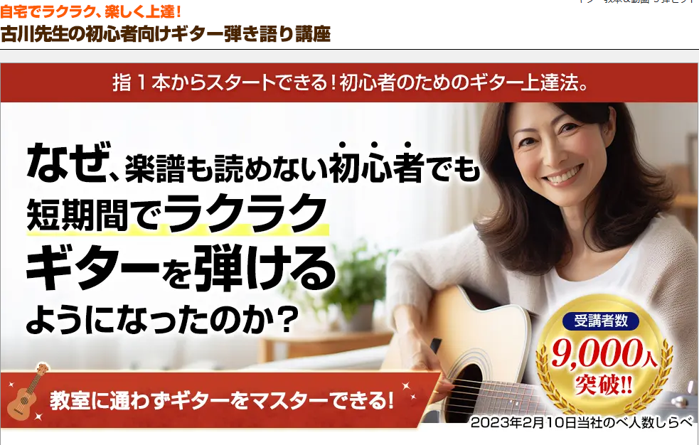 「Manabeeno ギター教本&動画3弾セット」は、ギタリスト&講師として長年活躍する古川忠義先生が監修・指導する、初心者専用のギター学習プログラムです。クラシック・ジャズ・ラテンなど多ジャンルをこなす古川先生が、“楽しく、確実に、ギターが弾けるようになる”ことを第一に設計。教材はDVD+教本+専用楽譜で構成され、「楽譜が読めない」「楽器を触ったことがない」人でも安心してスタートできる内容です。■この教材が選ばれる理由(5つのポイント)・初心者に最適化された構成:指1本からコードを押さえ、実際に名曲を弾き語りできるように段階設計されており、「ギターを始めたいけど何から手を付けていいかわからない」方にぴったり。 ・映像・教本の両輪学習:DVDで手元の動きを確認し、教本で理解を深める形式。映像・紙教材の組み合わせで理解速度アップ。・名曲収録でモチベーション維持:懐かしの「若者たち」「TRUE LOVE」など誰もが知るヒット曲をアレンジして収録。弾き語りスタイルで楽しみながら上達。・年代問わず対応可能:中高年・若年層問わず、多数の受講者実績あり。「還暦を過ぎても始められた」「楽器初心者でも楽しく進められた」と好評。 ・自宅学習&挫折しにくい工夫:楽譜が読めなくてもOK。見てすぐ押さえられる専用図解楽譜付きで、途中挫折を防止。 ■・ギターを通じて「歌いながら弾く」「自分で奏でる喜び」を実感できるようになる可能性があります・毎日のスキマ時間で“練習の習慣”が生まれ、ギターが“趣味”から“自分の楽しみ”に変わる可能性があります・楽器経験がない方でも、弾けたという成功体験が自信につながり、他の楽器や表現活動へのきっかけになる可能性があります■学習の流れ(3ステップ) 1. 教材を受け取り、DVD+教本の1巻目を視聴・読むところからスタート。指1本でコードを押さえる練習から。 2. 2〜3巻へと進み、コードチェンジ・ストローク・アルペジオと少しずつ難易度を上げながら、名曲アレンジで実践。 3. 習得後は “誰かに聴かせたくなる演奏” ができるよう、自信を持ってギターを楽しめるステージへ調整。 ■よくある質問(Q&A)Q:全くギター経験がないのですが大丈夫? A:はい。教材は“1本の指”から始まる構成で、ギターを触るのが初めての方でも安心です。 Q:楽譜が読めなくても弾けますか? A:専用楽譜には押さえる指・場所・タイミングが図解されており、音楽理論ゼロでも理解できます。Q:どれくらいで曲が弾けるようになりますか? A:個人差はありますが、「30日でマスターできるギター講座」と掲出されており、スキマ時間を活用して取り組むことで目安となります。 ■こんな方におすすめです・ずっと「ギターを始めたい」と思っていたけど一歩踏み出せなかった方 ・昔ギターをやっていたが挫折してしまった方・ブランクがある方 ・還暦・60代以上でも、気軽に再挑戦したい方 ・伴奏で歌えるようになりたい方や趣味として楽しみながら上達したい方 ■他教材との違い・強み 多くのギター教本や動画講座は「中級以上」や「コード理論」が前提となることが多いですが、Manabeeno教材は「1本の指から」「楽譜が読めない初心者」向けに特化。加えて名曲アレンジ・繰り返し視聴可能な映像・挫折しにくい学習設計で、上達までの壁を低くしています。 ■今、始めるべき理由・趣味や新しい挑戦として“ギター”を選ぶなら、「30日でマスター」のコンセプトは今のライフスタイルにマッチします。 ・教材は“数量限定・割引特典付き”の可能性があり、早めの申し込みでお得にスタートできます。 ■まとめ:ギターが“弾ける”を“楽しむ”へ変える選択を ギターを始めるのに遅すぎるということはありません。Manabeenoギター講座は、初心者が「弾けた!」を実感できるように工夫された設計。好きな歌をギターで奏で、歌いながら演奏する日常を今日から始めませんか?あなたのギターライフの第一歩を、今こそ踏み出しましょう。