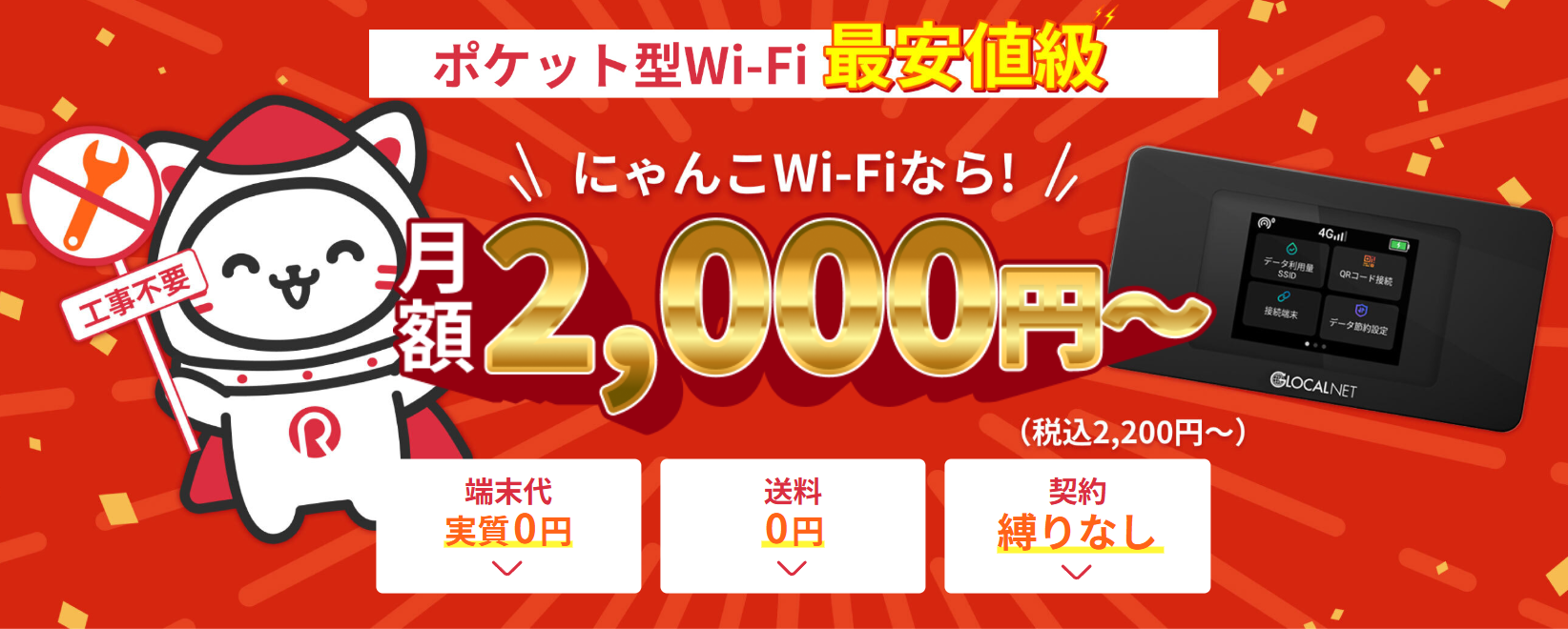 ポケットWi-Fiで迷っているなら、まずは「にゃんこWiFi」の柔軟さ・安さ・安心感を体感してください。
