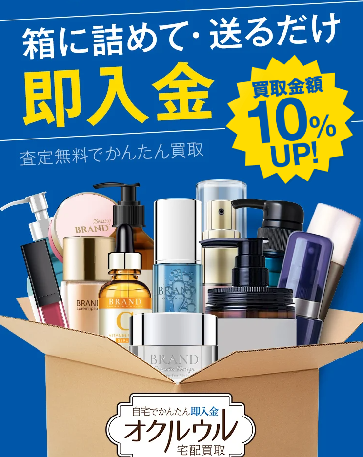 使わなくなった化粧品・香水・サプリ・ブランド品など“箱に入るものなら”何でも送って現金化。オクルウルなら自宅から手軽に買取手続きが完了します。