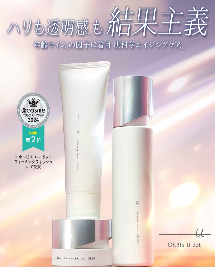 「最近、肌の調子がなんだか冴えない」「どんなにケアしても、潤いがすぐ逃げていく」「ハリや弾力がなくなって、顔全体がぼんやりして見える…」そんなお悩みを抱えていませんか?『オルビスユー ドット』は、オルビスが30年以上の研究を重ね、年齢肌の“停滞”に立ち向かうために開発された、最高峰のエイジングケアシリーズです。多くの女性が年齢を重ねるごとに感じる「変わらない肌」「応えてくれないスキンケア」。実はそれ、肌内部の“セラミドバランスの乱れ”が原因かもしれません。オルビスユー ドットは、角層のすみずみまで潤いを届ける“高浸透型セラミド類似成分”を配合し、肌本来の「自ら潤う力」にアプローチ。これまでの「与えるだけ」のスキンケアとは違い、肌そのものの根本力を引き出すという、まったく新しい考え方のスキンケアです。【オルビスユー ドットの魅力】● 独自の“セラミディアルコンプレックス”で水分保持機能を強化● 肌の「停滞」を突破する、浸透×密封のWアプローチ● 年齢とともに増える“複合悩み”に多角的に対応(乾燥、くすみ、毛穴、ハリ不足)● 濃密なのにベタつかない使用感。使い心地まで大人仕様● 肌にやさしい7つの無添加処方(無油分・無香料・無着色・アルコールフリー・界面活性剤フリー・パラベンフリー・アレルギーテスト済)【3ステップで叶う、本気のエイジングケア】▶ STEP1:クレンジング・洗顔 汚れをきちんと落としながら、肌本来の潤いは守る設計。摩擦レスのふわふわ泡が、肌をいたわりながら洗浄。▶ STEP2:化粧水 とろみがありながら肌なじみ抜群。美容液のような濃厚な潤いが、角層のすみずみにまで行き渡り、ふっくらとしたハリ肌へ。▶ STEP3:保湿クリーム コクのあるテクスチャーなのに、スッとなじんで重たくない。夜にたっぷり使えば、翌朝の肌の柔らかさと弾力に驚き。【実際に使った人の声】「肌がふっくらした感じがして、メイクノリが劇的に変わった!」「40代で初めて“本物のエイジングケア”に出会えた気がする」「乾燥・くすみ・毛穴、全部に効いてる感じ。肌が喜んでる!」【なぜ多くの女性に選ばれるのか?】・年齢による肌の“鈍さ”を打破できる設計・肌に必要な成分を“必要な場所”にしっかり届ける処方・肌を甘やかさず、鍛えるスキンケア・低刺激なのに確かな実感力【他のスキンケアとここが違う!】従来のエイジングケアは、「とにかく成分を与える」発想が主流でした。ですが、それだけでは肌は変わりません。オルビスユー ドットは、肌自らが“変わる力”を思い出すように、やさしく、でも確実に働きかけます。まるで自分の肌が「自力で蘇る」ような、新しい感覚のスキンケア。これが、リピーターが絶えない理由です。・30日間返品保証付きで安心「とりあえず試してみよう」ではなく、「これで肌を本気で変えたい」方にこそ選んでほしい。【こんな方におすすめ】✓ 最近肌の調子が安定しない✓ 年齢を感じる肌悩みが増えてきた✓ 色々試しても手応えがない✓ 肌に自信を取り戻したい✓ 肌も心も、前向きになれるケアがしたい【人生を変えるスキンケア、始めませんか?】肌が変わると、表情が変わります。表情が変わると、心が変わります。今この瞬間の決断が、未来のあなたの肌と笑顔を変えてくれる。「今の自分」に、期待できる。そんな肌に出会える感動を、ぜひあなたにも。最高峰のエイジングケア『オルビスユー ドット』未来のあなたの肌のために。今日から始めましょう。