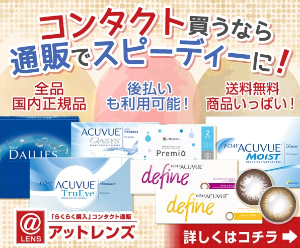 【アットレンズが選ばれる理由】・取り扱いブランドが豊富:大手メーカーのワンデーや乱視用、カラーコンタクトまで幅広く掲載。・送料無料サービスで、追加コストなく注文できる安心感。・定期購入やまとめ買いなど、リピーター向けのサービスも充実。・スマホで完結。来店不要で、忙しい毎日に寄り添える。・目の健康にも配慮された情報提供。「瞳の正しい使い方」「レンズの選び方」などもサポートあり。「レンズが切れてしまって明日からどうしよう」「入り時間が長くてつらい」「仕事終わりに買いに行く余裕がない」―そんな切羽詰まった状況にも、アットレンズならネット注文&発送で迅速対応。自宅や職場で受け取りが可能なので、ストレスを減らして自分の瞳に合ったレンズ選びができます。また、「使い捨てタイプで衛生的に使いたい」「ファッション感覚でカラーで気分を変えたい」「乱視用で見え方を良くしたい」といった細かいニーズにも応えられる取扱ラインナップ。しかも送料無料&定期購入でコストを抑えれば、継続利用も安心です。さらに、レンズを使い続けることで気になる「乾き」「ゴロゴロ感」「装用感の違和感」なども、商品のスペックやユーザーレビューから選べるため、「ちゃんと目をいたわりたい」という方にもおすすめです。「店舗に行く時間がない」「複数の種類を比べたい」「いつものレンズが割高になってきた」そんな現代人の瞳に、アットレンズは“オーダーメイド感覚”で応えています。